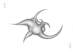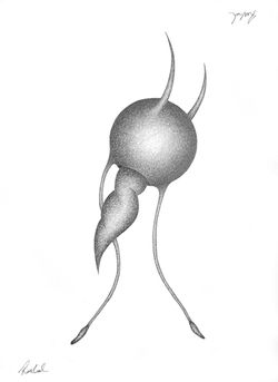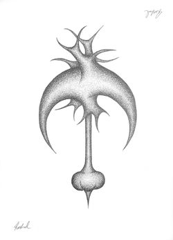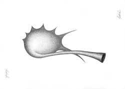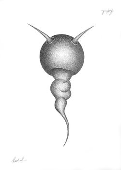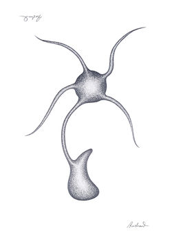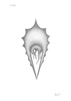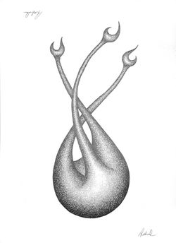 It started with an outpouring of drawings with no specific point of inspiration. Something was guiding them, and I saw that with some if I turned the piece around they became something else. Then a friend explained what they were to him, and it resonated with me, even though it wasn't what I had seen the piece to be. That got me questioning, and I realised they are whatever it touches within a person. So what are they? Maybe a fluid interpretation of what I see or feel in life, which led me to call them Amorphic; amorphic being something that has no defined shape; amorphous. When I then saw pictures of deep-sea creatures, and a geneticist told me the work was what he saw under a microscope, it made me understand that the Amorphic series are biomorphic, meaning 'having the form of a living organism'.